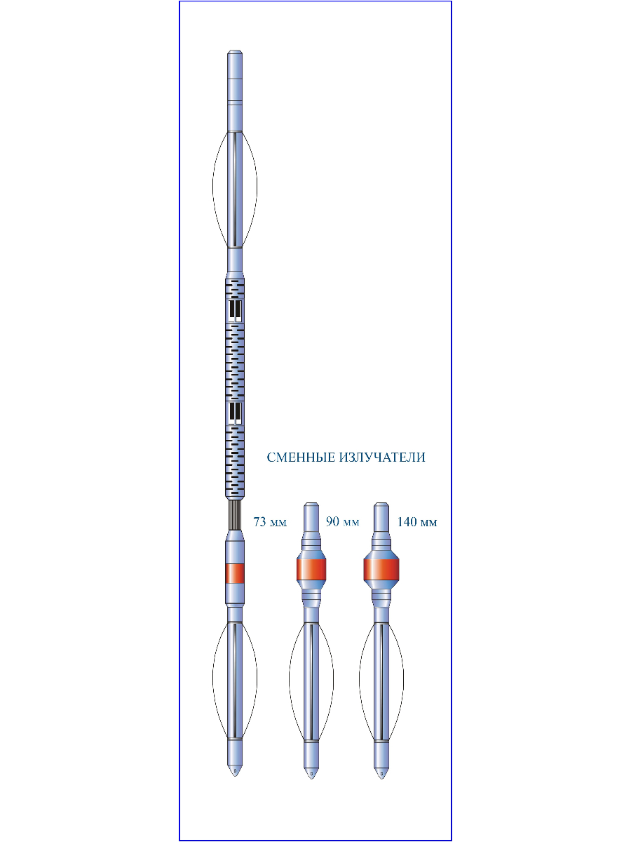 | Диаметры сменных излучателей, мм | 73, 90, 140 |